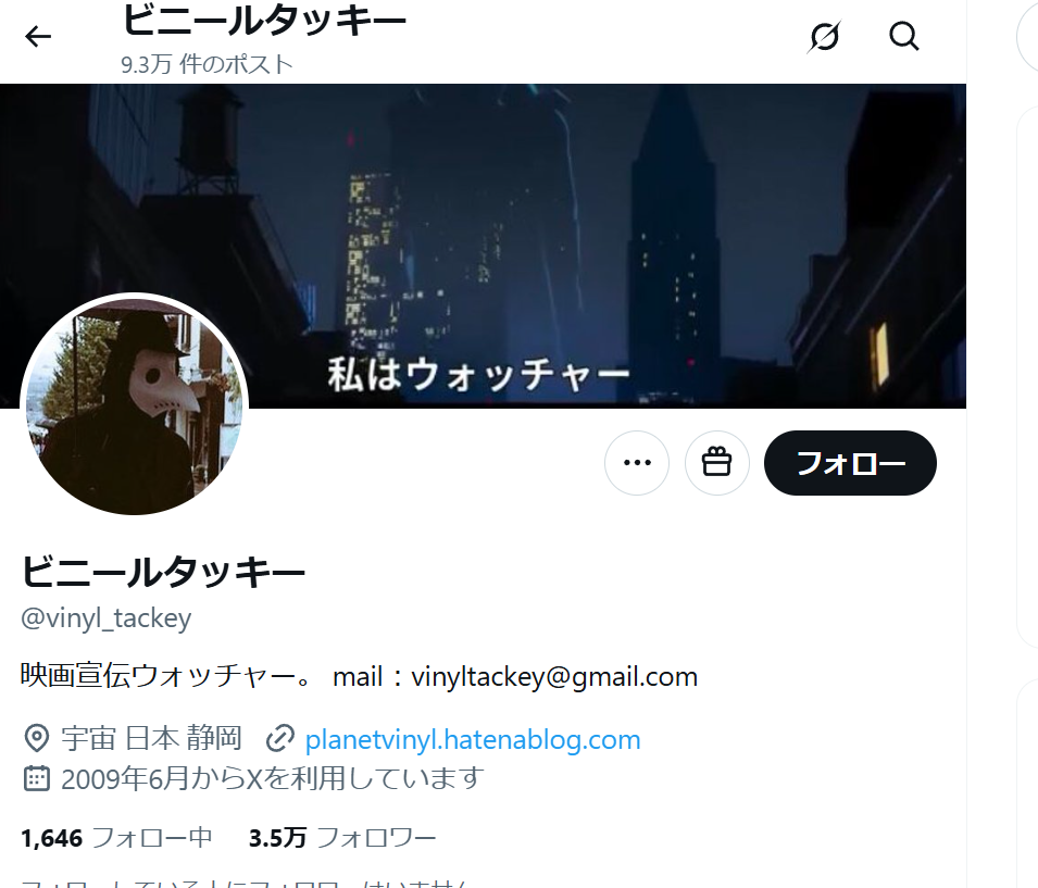 ビニールタッキー(@vinyl_tackey)さんは、Xで数万人のフォロワーを魅了した映画評論家・ライターであり、独特の存在感を持つ「映画宣伝ウォッチャー」として知られていました。