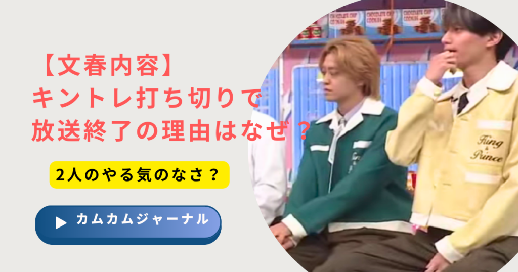 2026年1月、衝撃のニュースがKing & Princeファンに走りました。 日本テレビ系の冠番組「キントレ」(毎週土曜13:30〜14:30)が、2026年3月いっぱいで終了するという情報が、週刊文春の取材で明らかになったのです。 前身の「King & Princeる。」... -