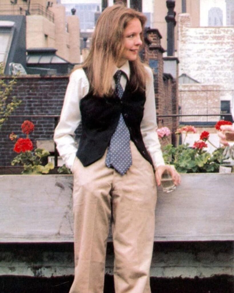 彼女のスタイルは、70年代のファッションシーンに衝撃を与え、今も「アニー・ホール・ルック」として語り継がれています。