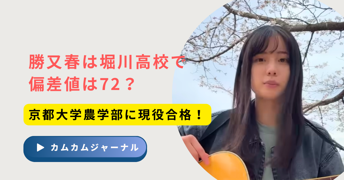 ・現役で京都大学に合格している進路実績では堀川高校は京都のトップ公立進学校の一つで、京都大学への合格者数が毎年20〜30人と豊富。勝又さんの卒業年度(2022年頃)も同様の実績があり、ぴったり合致。