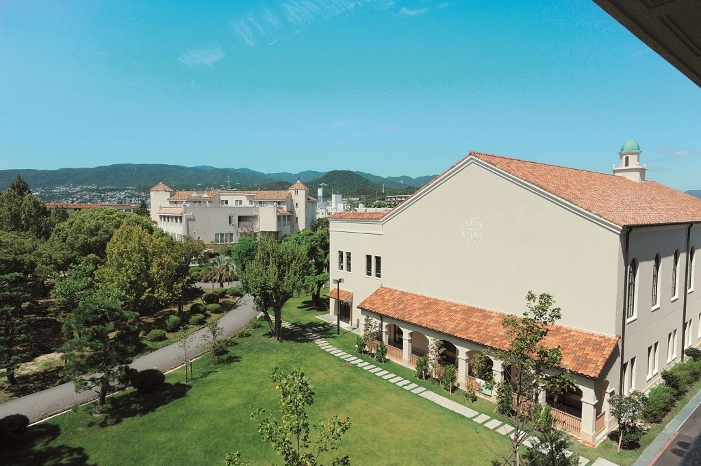 六甲山系の丘の上に位置するキャンパスは、自然豊かで落ち着いた学習環境が魅力。