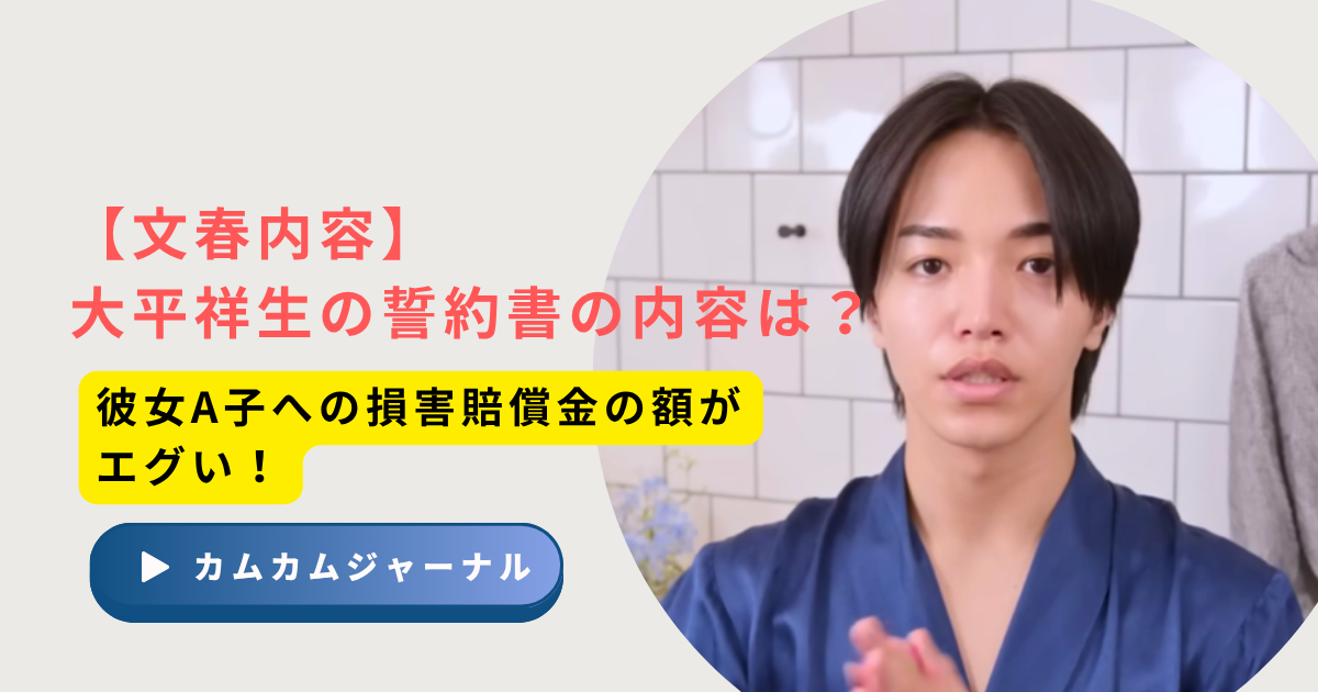 【文春内容】大平祥生の誓約書の内容は?彼女A子への損害賠償金の額がエグい!